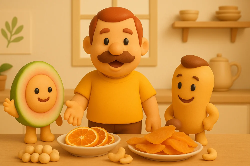 在快速加工的飲食時代,越來越多消費者開始思考:我們吃下肚的,到底是「食品」還是「食物」?真正健康的果乾,不需濃烈調味或額外糖分點綴,只需保留水果的原型、香氣與纖維,即是對味蕾與身體的最好交代。黃爸爸嚴選三款果乾,以純粹、乾淨的製程,呈現出最接近「果物本質」的風味層次:果乾三品,三重天然滋味橙香果乾:取自新鮮柳橙切片,乾燥過程保留果皮與果肉,口感層次分明,帶出果酸與果香交織的氣息。