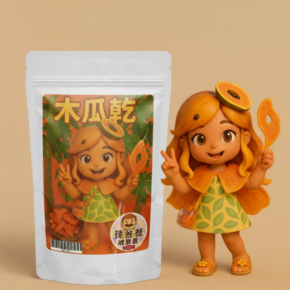 台灣木瓜乾由黃爸爸糖果屋精選販售,是一款甜而不膩、口感Q彈且充滿自然果香的優質果乾產品。台灣木瓜乾是選用台灣當地的優質木瓜經過精心製作而成,保留了木瓜的天然營養與香氣,是每次嘴饞時的最佳選擇。